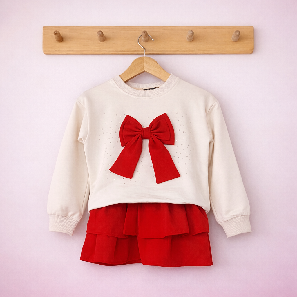 Kırmızı Fiyonklu Etekli Takım