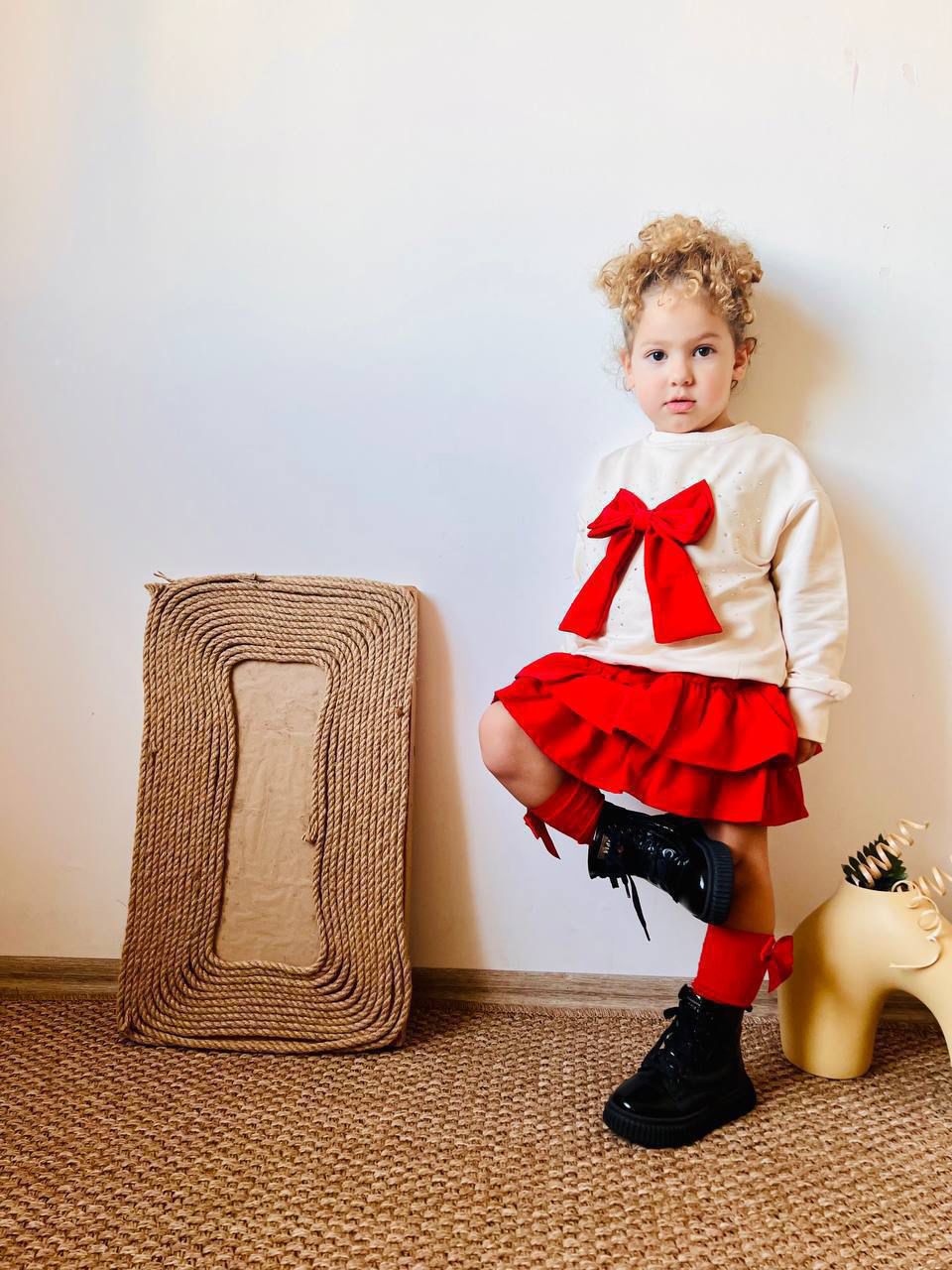 Kırmızı Fiyonklu Etekli Takım, birçok farklı ortamda kendinizi özel hissetmenizi sağlar. Üstün kalite malzemesi ve zarif detayları sayesinde uzun süreli bir kullanım sağlar. Stil, konfor ve şıklığı bir araya getiren bu takım, çekici ve dikkat çekici bir görünüm elde etmenizi sağlayarak, kendinize olan güveninizi artıracaktır.